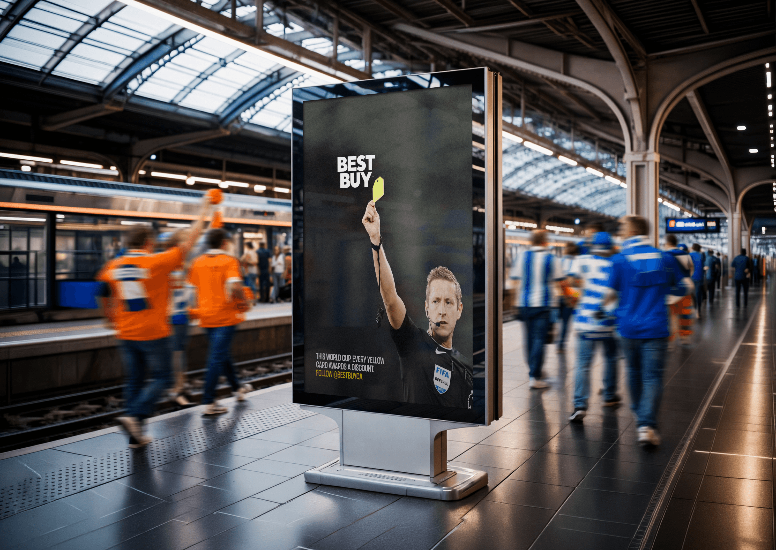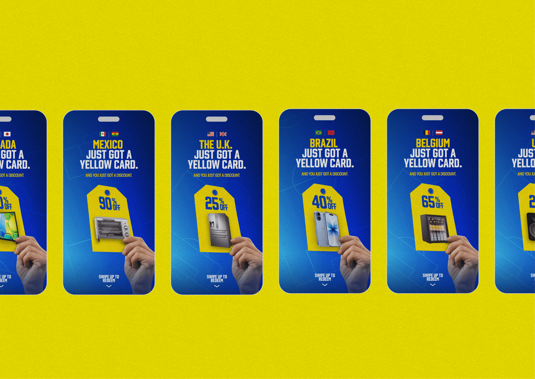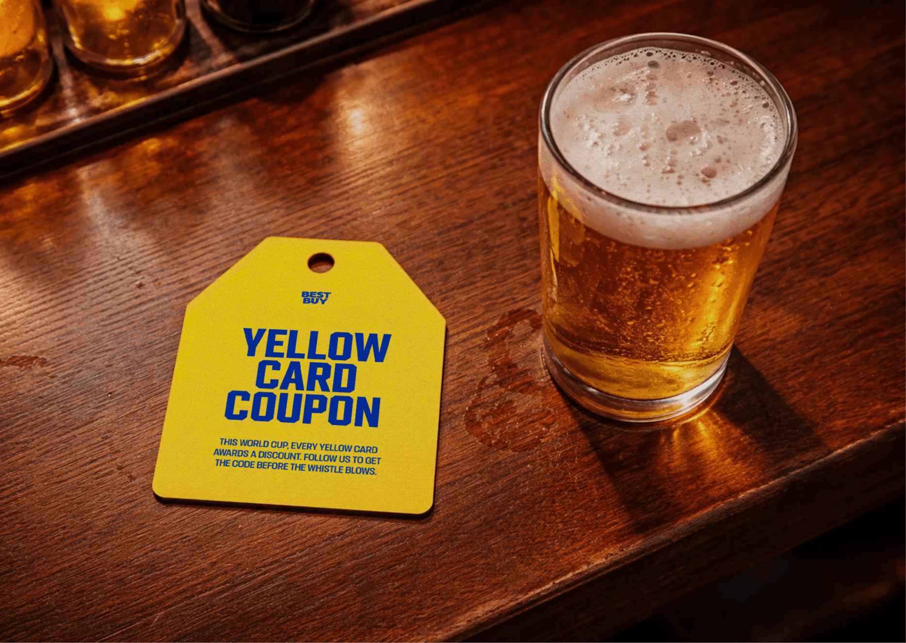 During the 2026 FIFA World Cup, Best Buy will hijack every yellow card on the field. Each yellow card triggers a 24-hour flash coupon on our social Stories, rewarding fans who are watching the game live and making Best Buy a part of culture. Each coupon highlights a product that brings fans closer to the game, reminding them what Best Buy has to offer.